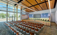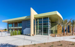 The new Palm Springs USD District Office will serve up to 200 District employees, and will include work space for human resources, educational and business services, as well as the Superintendent’s office. In addition, there is space for a lounge, fitness center, restrooms, and for other common areas. A large boardroom located on the first floor will be used for District meetings and hearings, and will be available for community use. The boardroom has floor-to-ceiling windows along the entire length of one wall to let in natural light, and project transparency to the community.