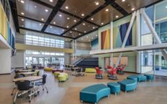 The new Saburo Muraoka Elementary School is the 46th campus in a growing District, and will serve approximately 800 students in kindergarten through sixth grade. The project consists of a new two-story Administration / Kindergarten / Classroom / Library Building, Multipurpose / Food Service Building, Lunch Shelter, and associated site improvements. The building is centered around a two-story Library, which also serves as an Innovation Center for students and staff to work collaboratively.