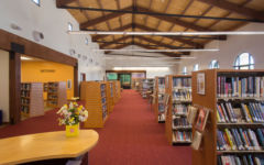 The Lemon Grove Science, Technology, Engineering & Math (STEM) Academy joint-use library features a bookstore, children’s area, teen study and access to public computers. The structure arcades along intersecting streets which expresses the public nature of the facility and encourages community use. The highlight of the library is a sprawling great room constructed with exposed wood trusses. The architecture not only reflects elements of Mission style design, but specifically addresses aspects of the Mission style that were prevalent in Lemon Grove’s early stages of development.