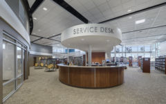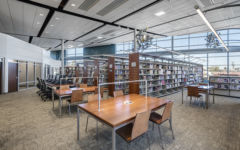 - An outdoor reading patio and landscaping that complements the library’s architectural design